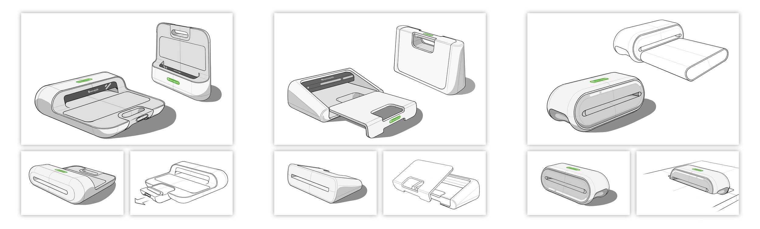 We considered what functions to give the accessory platforms, including storage of the power cable, nesting and the ability to stand upright when not in use.
